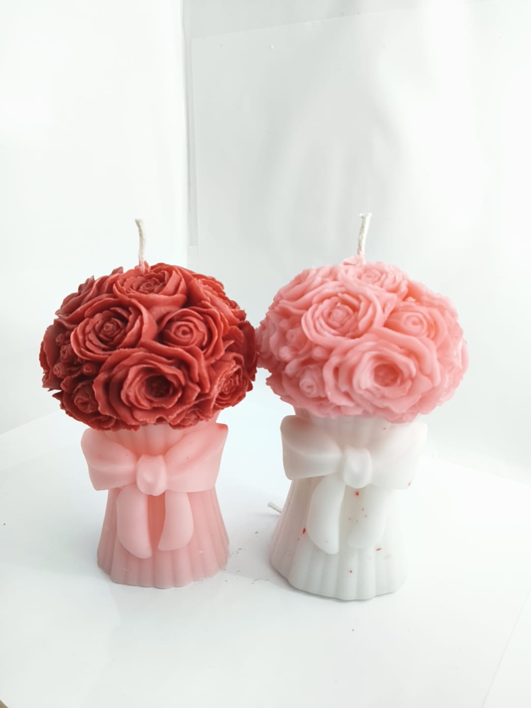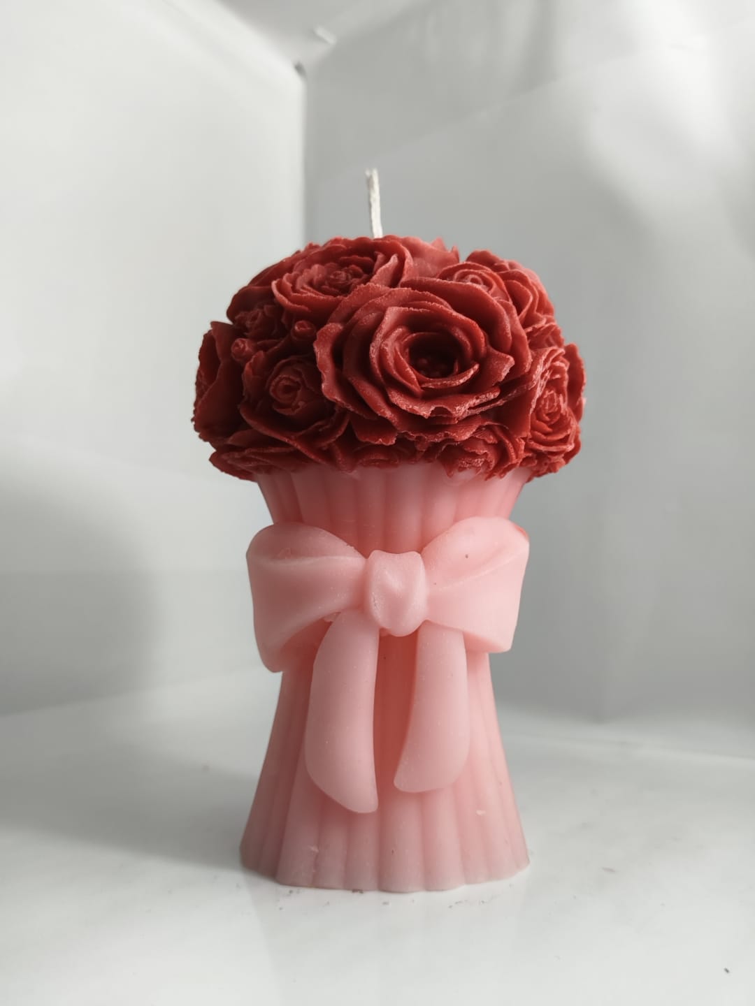 Add a touch of elegance and charm to any space with the Blush Bloom Bouquet Candle. Designed to resemble a delicate arrangement of blooming roses, this handcrafted candle features soft pink floral details atop a beautifully sculpted white base, accented with a graceful bow. Perfect as a decorative piece or a thoughtful gift, it brings warmth, romance, and a subtle artistic flair to your home. Ideal for special occasions, self-care moments, or simply elevating your dรฉcor.